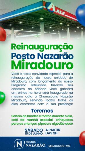 10 de junho de 2024 Portal MiradouroSeja o primeiro a comentar on Reinauguração do Posto Nazarão Miradouro neste sábado dia 15 de junho