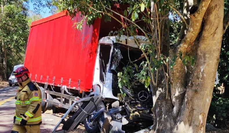 Grave Acidente na AMG 2915: Caminhão da Coca-Cola colide contra árvore