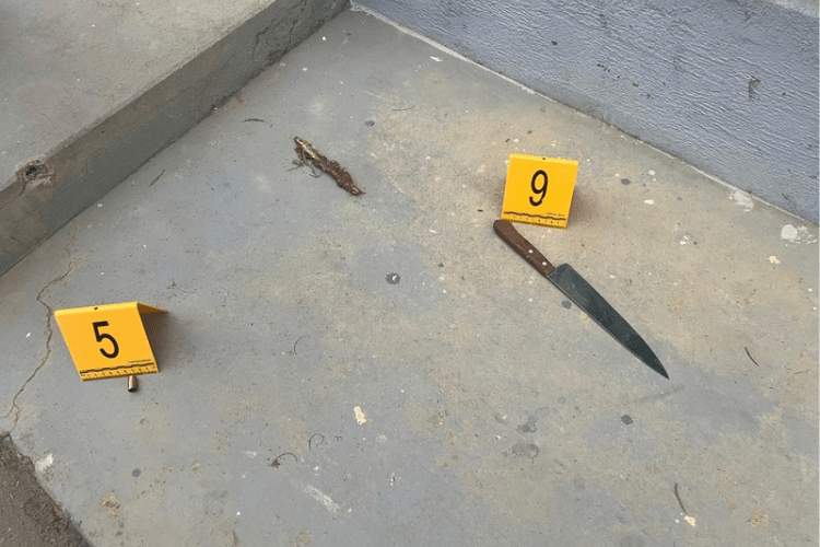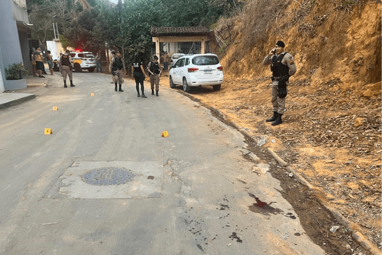 A Polícia Civil também foi acionada e enviou uma equipe de perícia ao local para investigar o ocorrido. Durante a análise, foram recolhidos os cartuchos deflagrados e a faca utilizada pelo homem.