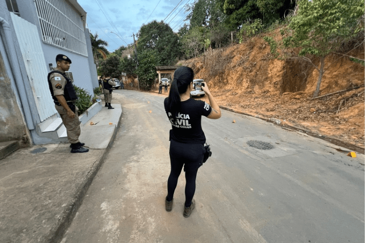 A Polícia Civil também foi acionada e enviou uma equipe de perícia ao local para investigar o ocorrido. Durante a análise, foram recolhidos os cartuchos deflagrados e a faca utilizada pelo homem.