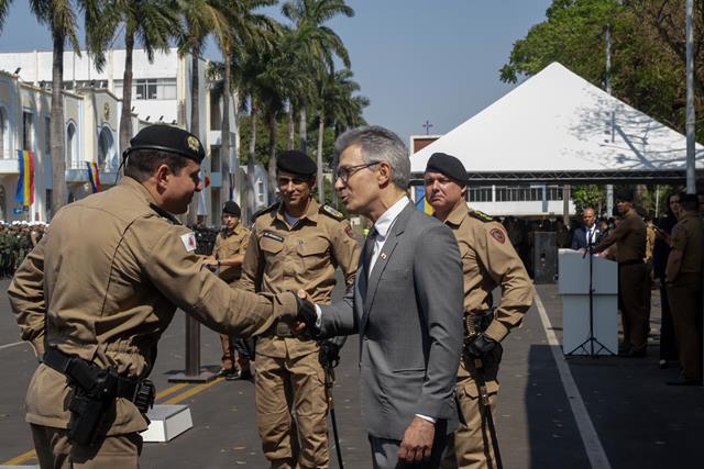 Nesta quarta-feira, 25 de setembro, o governador Romeu Zema presidiu a solenidade de transmissão e assunção dos cargos da Polícia Militar de Minas Gerais (PMMG) em Belo Horizonte. Durante o evento, foram apresentados o novo comandante-geral, coronel Carlos Frederico Otoni Garcia, e o novo chefe do Estado-Maior, coronel Maurício José de Oliveira.