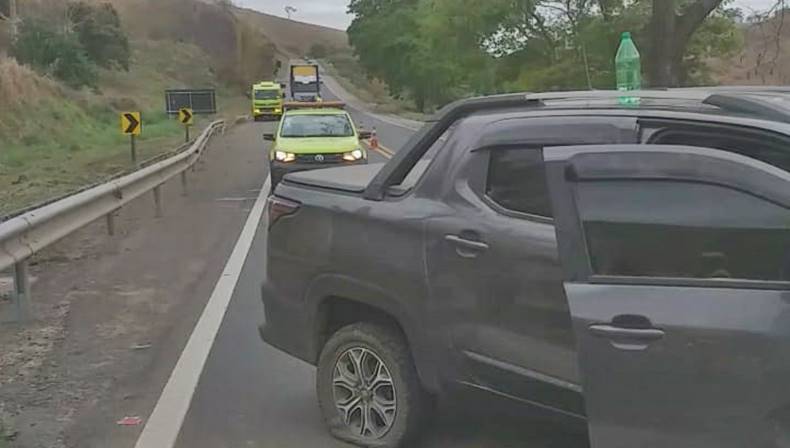 Um acidente ocorreu na tarde deste domingo, quando o condutor de uma caminhonete perdeu o controle da direção e colidiu contra o guarda corpo de uma ponte, na BR-116, próximo à entrada da comunidade dos Gomes, entre Miradouro e Muriaé.