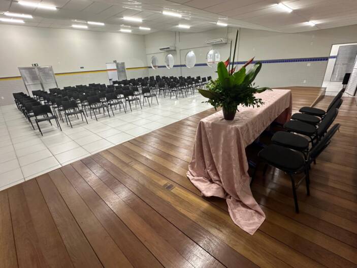 Pensando no lazer e na socialização dos alunos, a escola agora dispõe de um playground ao ar livre e um pátio coberto, onde as crianças podem brincar e interagir em um ambiente seguro e protegido. Outro grande destaque é o auditório, com capacidade para 100 pessoas, completo com vestiário e camarim, que permitirá a realização de eventos, apresentações e atividades culturais, fortalecendo ainda mais o vínculo entre a escola e a comunidade.