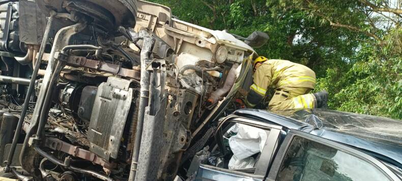 O motorista do caminhão se encontrava preso às ferragens no interior do veículo, os Bombeiros Militares utilizaram de técnicas e ferramentas de salvamento veicular para liberar espaço de acesso à vítima. Para lograr êxito no salvamento, foi necessário realizar cortes de alívio e expansão do painel do veículo, extração do volante e a remoção de parte do painel do caminhão, somente assim foi possível realizar a retirada do motorista do caminhão.