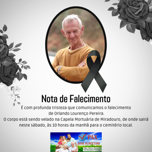 O corpo de Orlando está sendo velado na Capela Mortuária de Miradouro, e o cortejo seguirá para o Cemitério Local neste sábado, às 10 horas da manhã.