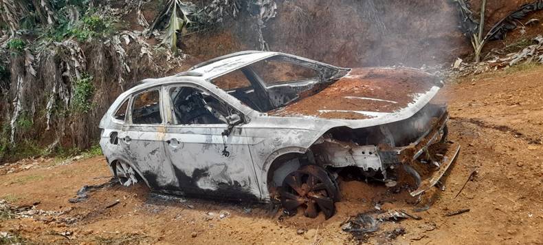 O veículo foi localizado incendiado na zona rural de Conceição em Carangola