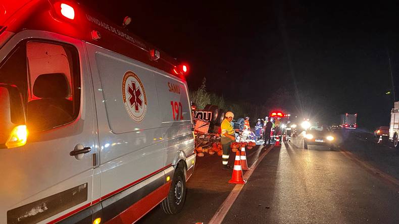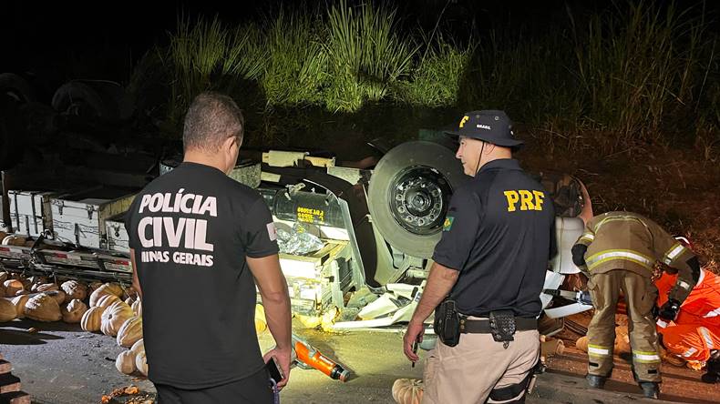 A Polícia Rodoviária Federal (PRF) esteve no local realizando o controle do tráfego e as investigações iniciais sobre as causas do acidente. Embora as circunstâncias ainda sejam apuradas, a curva acentuada da rodovia, somada à carga volumosa do caminhão, pode ter sido um fator que contribuiu para a perda de controle do veículo.