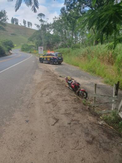 Na manhã desse sábado, dia 1 de março, por volta das 08 horas, equipe PRF realizava fiscalização de rotina no km 698.0 da BR 116, no município de Muriaé/MG, quando a motocicleta, Honda/Cg 160 Start, cor vermelha, passou com a placa traseira levantada no sentido decrescente da rodovia (Muriaé/Miradouro). Prontamente, esta equipe PRF deslocou atrás e a alcançou no KM 691 dessa BR-116.