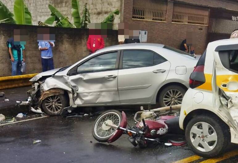 De acordo com relatos colhidos no local, um veículo perdeu o controle e colidiu com duas motocicletas e outro automóvel, resultando em cinco vítimas. Os ocupantes das motocicletas foram os mais afetados.