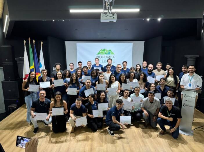 Na sexta-feira, 11 de abril, o Rio Pomba Valley celebrou a formatura de mais duas turmas, marcando um importante passo na formação de profissionais de tecnologia na Zona da Mata mineira. A cerimônia contou com a presença do Rodolfo Pinheiro, diretor técnico e comercial da Energisa Minas Rio, e Aline Freitas, gerente comercial da Sensedia. Ao todo, 50 alunos se formaram nos dois cursos.