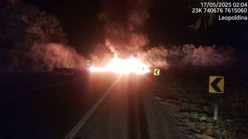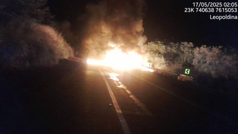 Na madrugada deste sábado, 17 de maio, um grave acidente foi registrado por volta da 1h45 no km 770 da BR-116, no município de Leopoldina (MG). Uma carreta que seguia com destino a Pernambuco, no sentido Norte, sofreu o desatrelamento do compartimento de carga, resultando em um tombamento e um incêndio de grandes proporções.