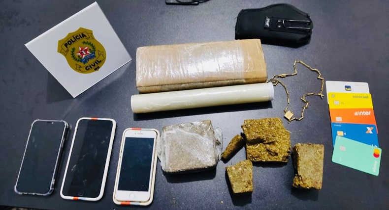 Durante o cumprimento da ordem judicial, os investigadores localizaram substância entorpecente, identificada como maconha, além de materiais típicos do tráfico de drogas. Um dos suspeitos tentou resistir à abordagem, exigindo atuação firme por parte da equipe policial.