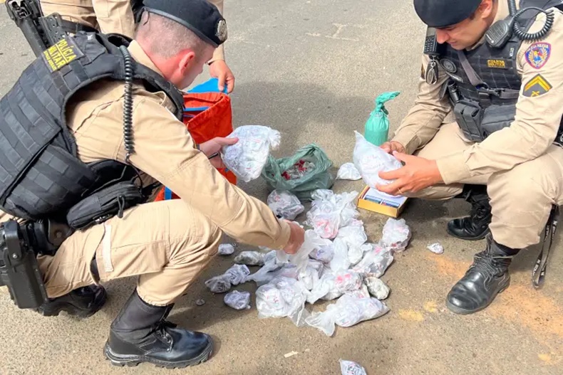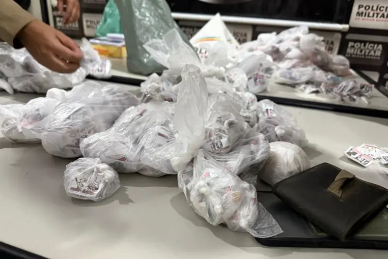 Como o homem se recusou a permitir a entrada da guarnição, foi necessário acionar o Poder Judiciário, que expediu um mandado de busca e apreensão. Com o mandado em mãos, a Polícia entrou no imóvel e encontrou diversas porções de drogas fracionadas e embaladas, prontas para a comercialização. As embalagens apresentavam inscrições que fazem referência a uma possível facção criminosa atuante na região.