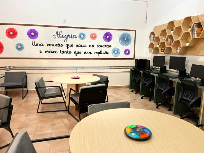A nova sala conta com mobiliário adequado, materiais pedagógicos diversos, jogos, livros e recursos tecnológicos, possibilitando um atendimento mais eficaz e individualizado, que respeita as particularidades de cada estudante.