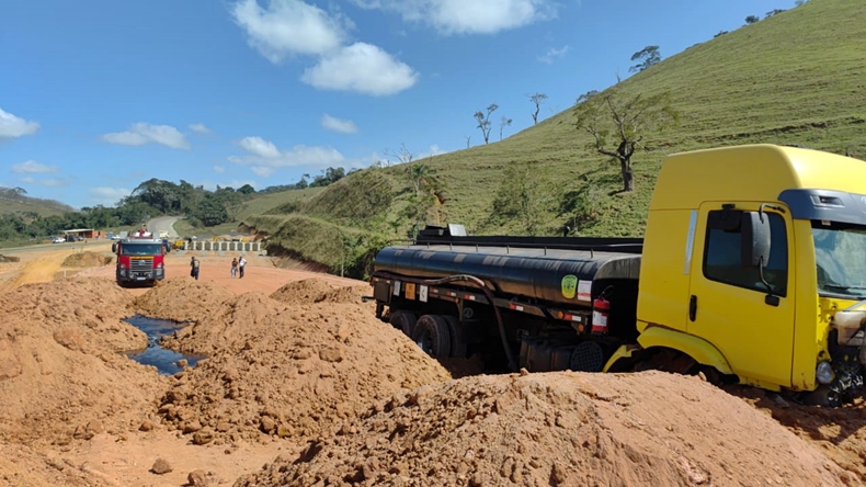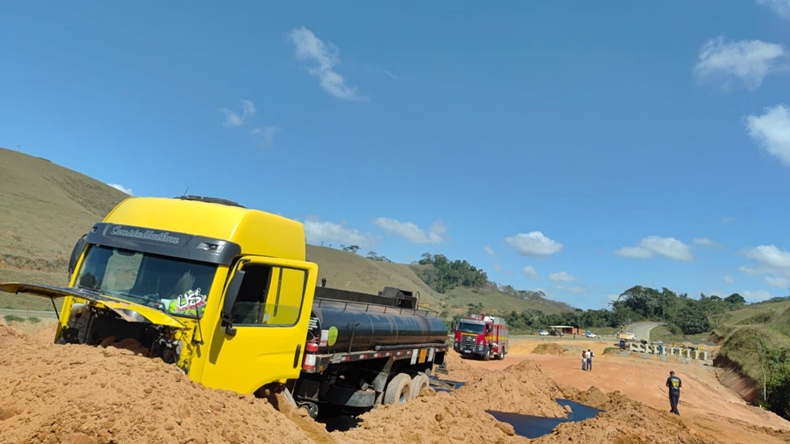 Na manhã desta terça-feira, 16 de setembro, o 2º Pelotão de Bombeiros de Muriaé atendeu a um acidente na BR 356, no km 244, próximo à Ponte da Embaúba. Um caminhão tanque carregado com Emulsão Asfáltica, um produto altamente nocivo ao meio ambiente, colidiu contra amontoados de terra em uma área de obras da rodovia.