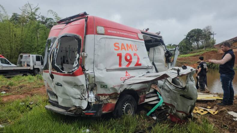 O motorista da ambulância, de 45 anos, morreu no local. O técnico em enfermagem, que também estava na unidade, sofreu uma possível fratura em um dos membros inferiores. Já a gestante apresentou traumatismo cranioencefálico (TCE) e sinais de choque em razão do impacto.