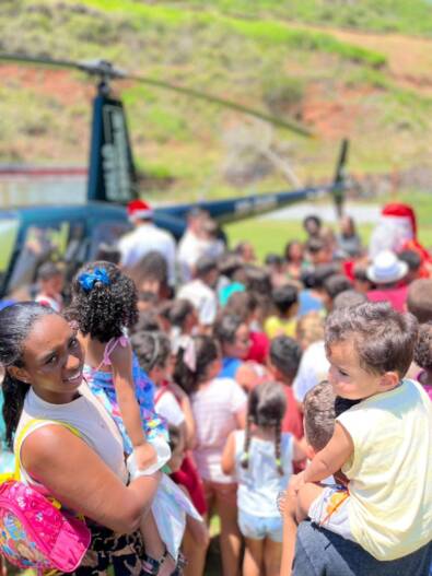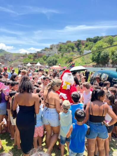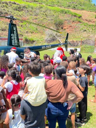 A chegada do Papai Noel a Miradouro foi marcada por emoção, surpresa e muita alegria nesta sexta-feira (12). Em uma ação inédita no município, o bom velhinho desembarcou de helicóptero no Campo da AMA, sendo recebido por um grande público, muito carinho da comunidade e um calor intenso de 34 graus, que não diminuiu o entusiasmo dos presentes.