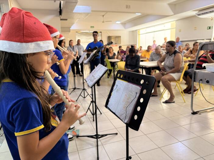 A rotina do Hospital do Câncer de Muriaé ganhou uma trilha sonora diferente. Um grupo de alunos de Paula Cândido trouxe suas flautas para uma visita que espalhou a magia do Natal pela instituição. Eles realizaram uma apresentação musical nas recepções, Casa de Apoio e internações.