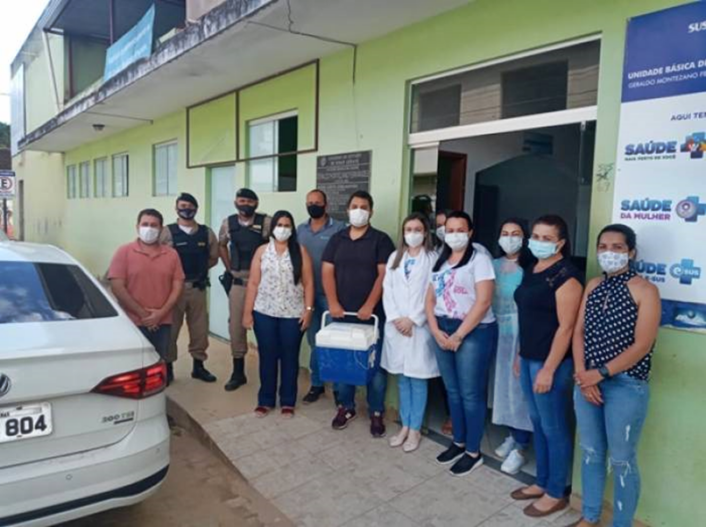 Prefeito Cloves Botelho ao lado da equipe de Saúde, com militares que fizeram a escolta do imunizante até Miradouro Leia mais …