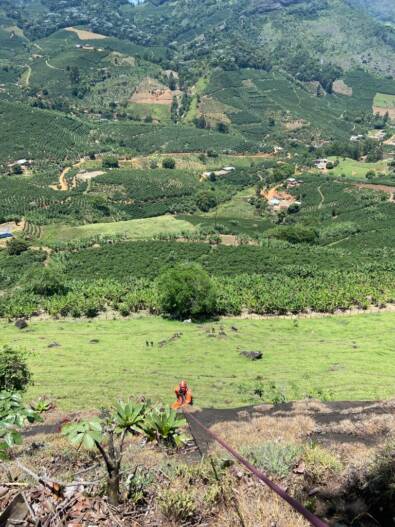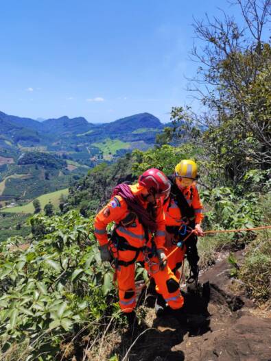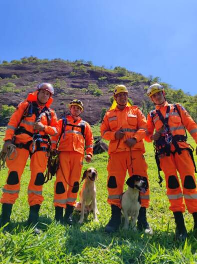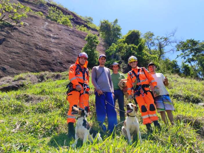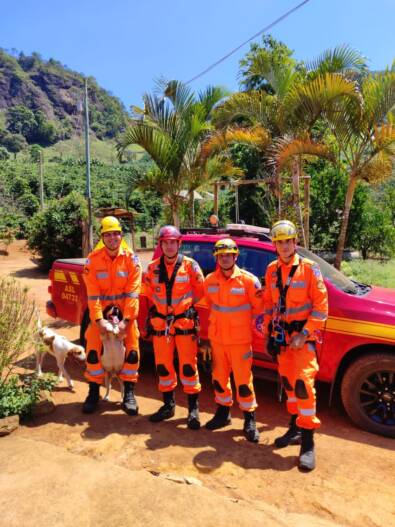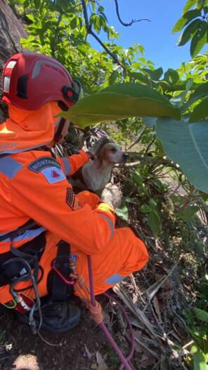 Resgate nas alturas: Corpo de Bombeiros de Muriaé resgatam dois cachorros presos em pedreira na zona rural de Canragola