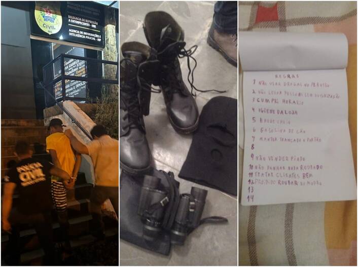 Foram apreendidos carros e motocicletas utilizados pelos investigados como meio para a prática de crimes, além de dinheiro, drogas, armas de fogo e munições. As diligências ainda estão em andamento.