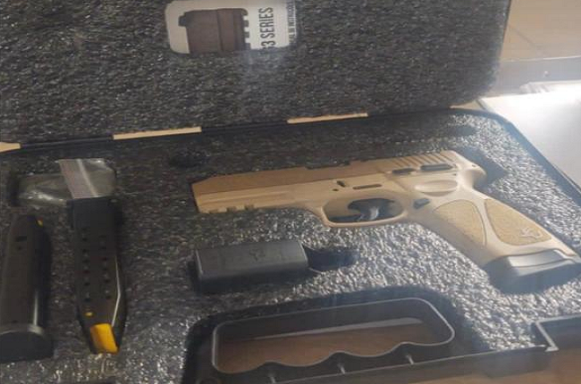 Durante abordagem foi encontrado com o suspeito uma pistola calibre 9mm, equipada com mira a laser, além de drogas.