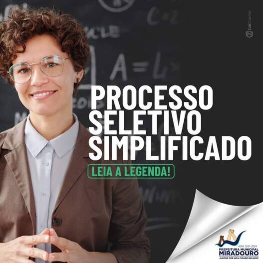 ✍A Prefeitura de Miradouro – Administração Municipal 2021-2024 informa que foi publicado edital de Processo Seletivo Simplificado para preenchimento de vagas de contratação imediata e cadastro reserva, para atuação em diversas funções da instituição pública municipal.