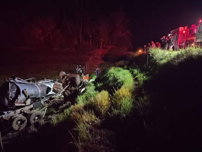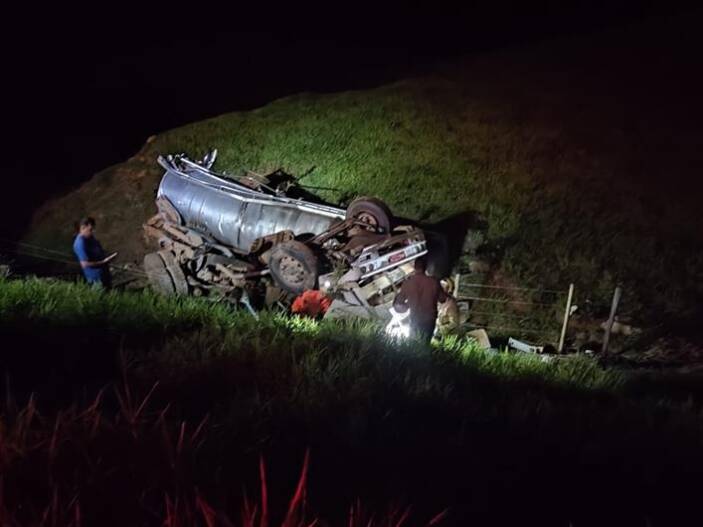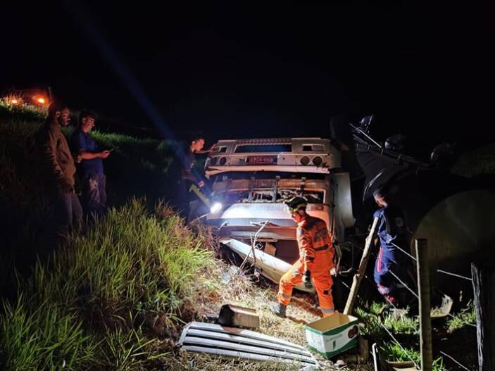 O Corpo de Bombeiros de Muriaé foi acionado por volta das 19 horas desta sexta-feira (18) e as primeiras informações davam conta de que havia ocorrido um tombamento com um caminhão próximo a Ponte da Umbaúba, na BR-356 (Estrada Muriaé-Ervália), em Pirapanema.