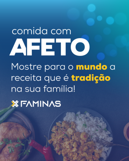 Estão abertas as inscrições para o projeto “Comida com Afeto”, uma iniciativa da FAMINAS que tem como objetivo fazer um resgate cultural gastronômico, dando visibilidades às receitas que são tradição nas famílias brasileiras. Os interessados podem se inscrever pelo e-mail extensão .mre@faminas.edu.br