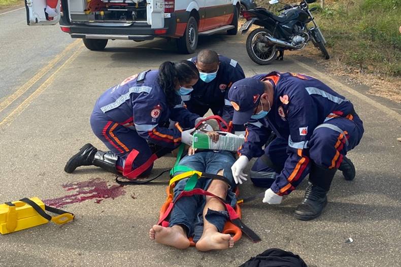 Segundo informações, a moto em que motociclista estava furou o pneu, no momento em que ele realizava uma curva. Ele e sua mãe, que estava na garupa, ficaram feridos.