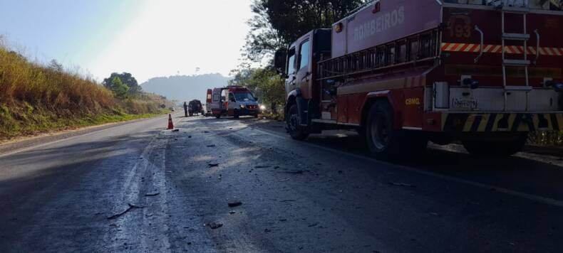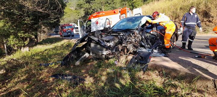 Motorista fica preso às ferragens em grave acidente na BR 116, próximo de Fervedouro, na manhã deste domingo (24-07)