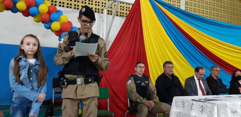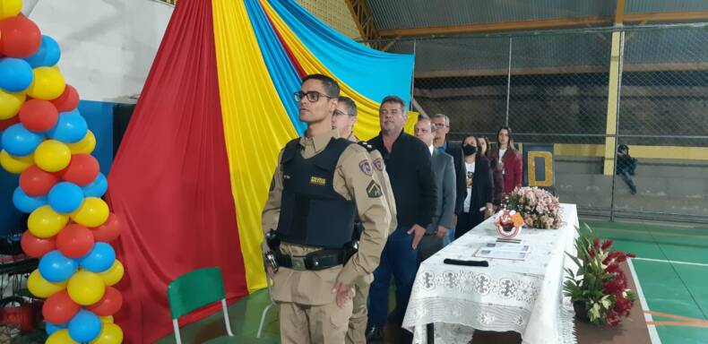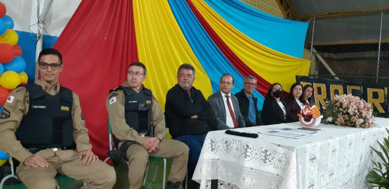 A solenidade contou com a presença do comandante do 4º Pelotão de Polícia Militar de Miradouro, Ten. PM Anderson Corrêa Rodrigues, Sd PM Ryan instrutor do Proerd e do Prefeito Cloves da Silva Botelho.