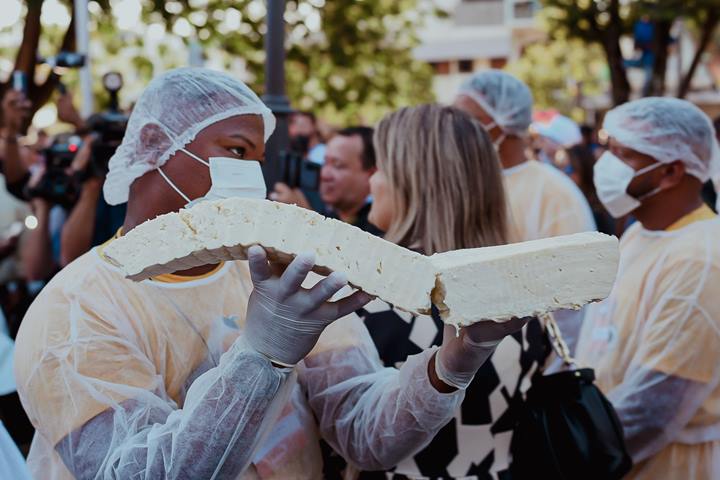As iguarias foram auditadas na tarde do último sábado (18) pelo Rank Brasil, o Livro dos Recordes Brasileiro. Após a confirmação dos recordes, queijo e doce de leite desfilaram em carro aberto pelas ruas da cidade, chegando à praça central, onde um bule gigante com 1.200 litros de queimadinha já estava posicionado.
