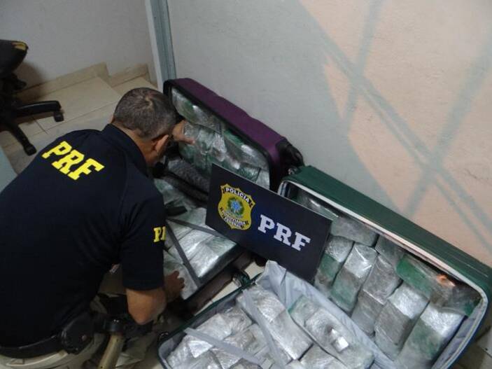 A Polícia Rodoviária Federal de Muriaé apreendeu no fim da tarde desta terça-feira (07), cerca de 69 kg de maconha. Tudo aconteceu quando os policiais realizavam uma operação de rotina na BR-116, em Muriaé, e ao parar um ônibus de viagem, que seguia do Rio de Janeiro para a região Nordeste do país, foi identificado um suspeito entre os passageiros.