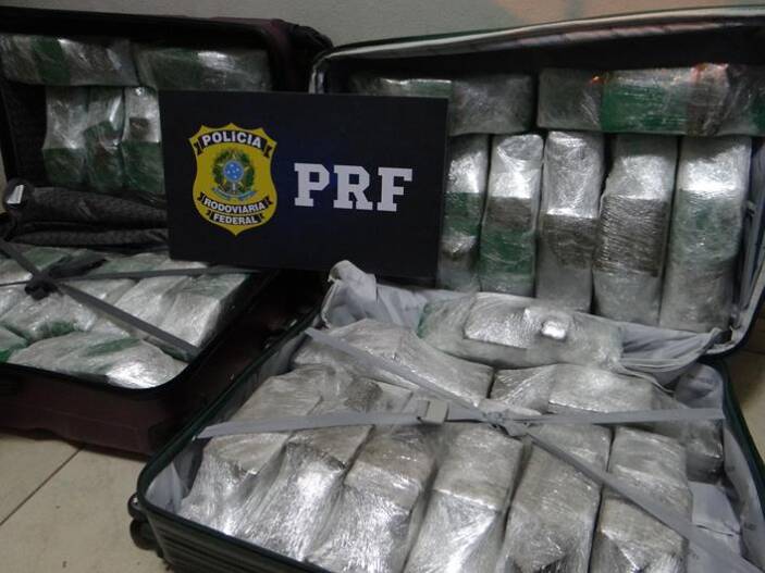 Diante do fato, os policiais fizeram uma busca entre as bagagens, e dentro de duas malas grandes do passageiro, estava droga. Quanto ao passageiro, trata-se de um menor de idade, 17 anos, e por isso foi acionado o Conselho Tutelar de Muriaé. Posteriormente o autor e droga foram encaminhados para a Delegacia de Polícia Civil de Muriaé para as demais providências.