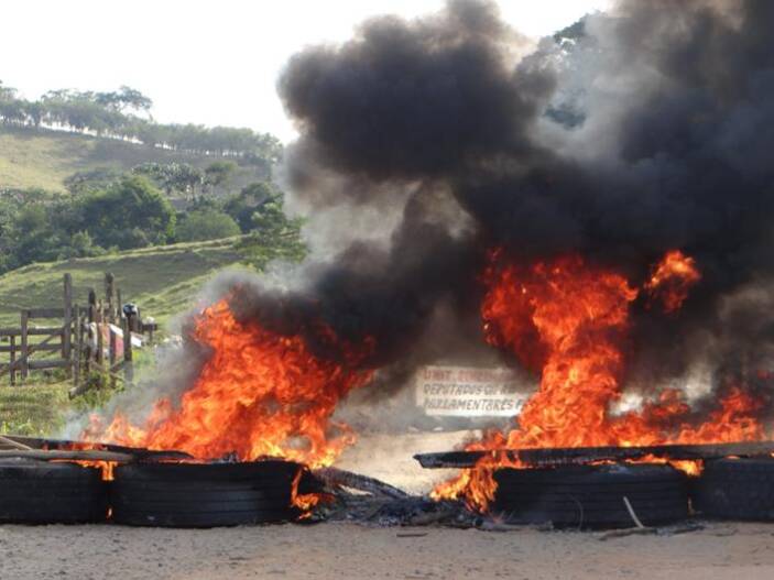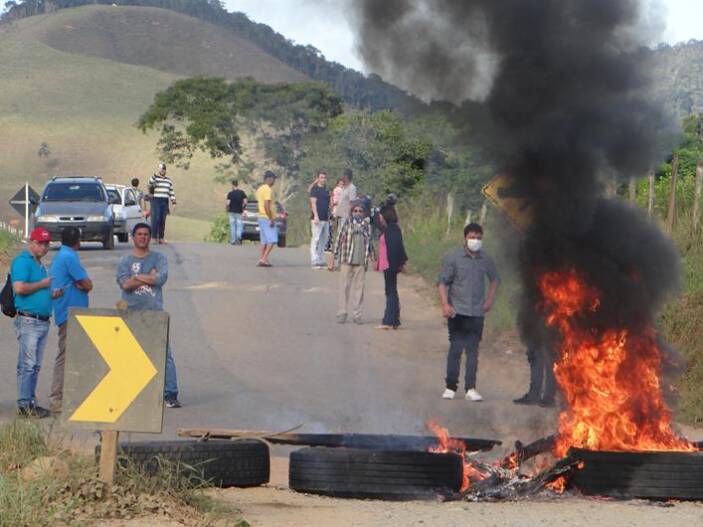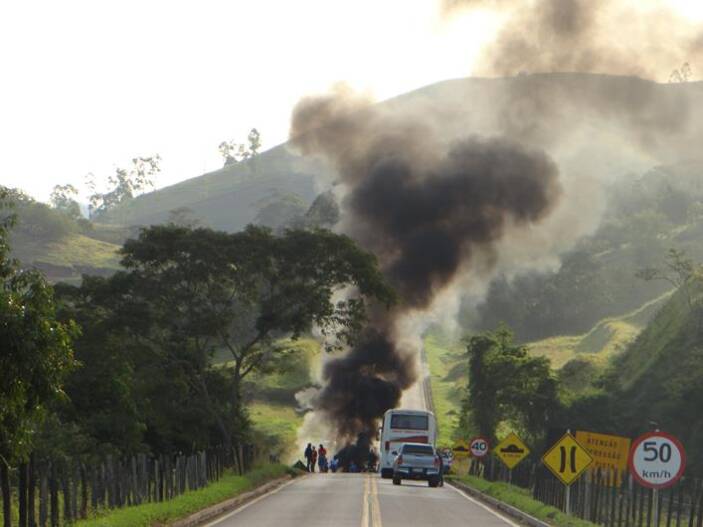 Pouco antes das 15 horas, a rodovia foi fechada e colocado fogo em pneus. Nossa reportagem registrou a primeira hora da manifestação e nenhum incidente havia ocorrido, com exceção de um princípio de confusão envolvendo um motorista de caminhão e um condutor de motocicleta, os quais queriam passar pelo ponto interditado.