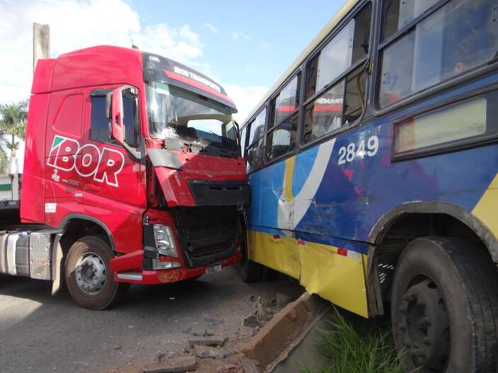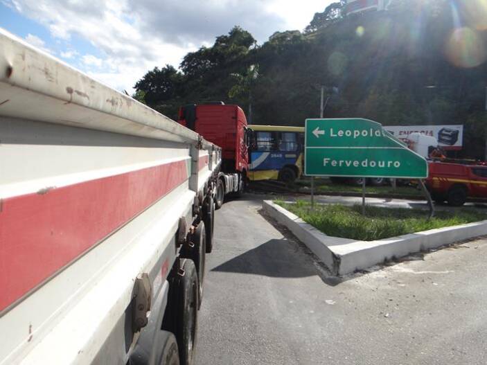 Acidente entre ônibus e Carreta no Trevo da Chevrolet na tarde desta terça-feira (24-05) em Muriaé