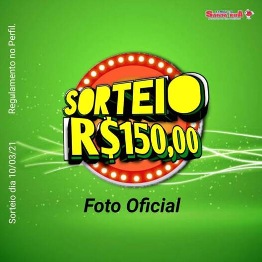 A Farmácia Santa Rita Virtual juntamente com a Farmácia Santa Rita, vai estar sorteando R$ 150,00 em Vales Compra.