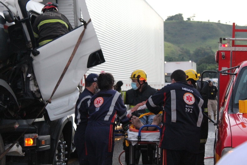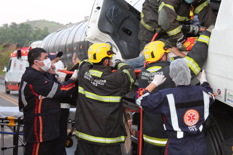 Um motorista de um caminhão ficou ferido depois de atingir a traseira de uma carreta. O acidente aconteceu na manhã desta quinta-feira (21) na BR 116, próximo do posto desativado da PRF de Fervedouro. O motorista ficou preso entre as ferragens, sendo socorrido pelo Corpo de Bombeiros de Muriaé e encaminhando pelo SAMU para o Hospital Casa de Caridade de Carangola.