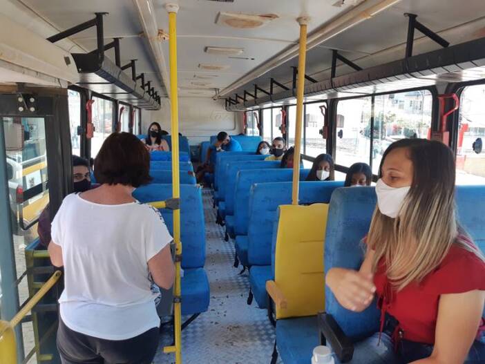 Rosane Valentim, Secretária de Educação, fez questão de ir ao ônibus para desejar aos estudantes, boa prova.
