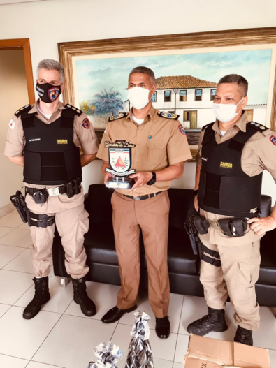 O Comandante, Ten Cel Márcio e o Subcomandante do 47º BPM, Major Sandro, foram pessoalmente nesta quinta-feira à cidade de Belo Horizonte, no Gabinete do Comando Geral da Polícia Militar, para realizar a entrega do prêmio ao Excelentíssimo Senhor Comandante Geral da PMMG, Cel PM Rodrigo Sousa Rodrigues, ao Cel PM Chinelato e ao Ten Cel PM Amorim, sendo também entregue uma lembrança ao Sub Ten Antônio.