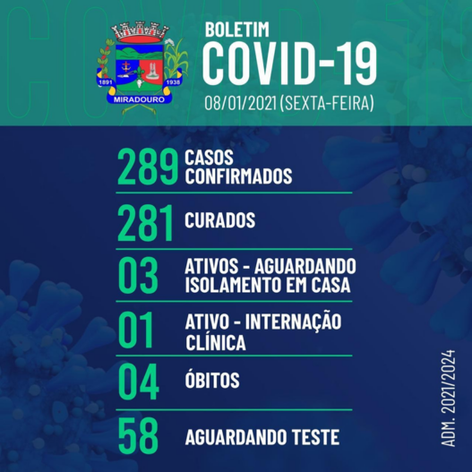 A Prefeitura de Miradouro, por meio da Secretaria de Municipal de Saúde, informa o boletim epidemiológico, desta sexta-feira (08/01/2021).