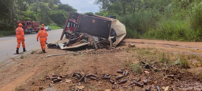 No local foi constatado que se tratava de um tombamento de carreta carregada de vasilhames (garrafas) que seguia no sentido a Muriaé, fato ocorrido em uma curva, e o motorista não teria se ferido. Todos os procedimentos foram feitos e a Polícia Rodoviária Federal foi acionada para assumir a ocorrência e apurar as causas do acidente.
