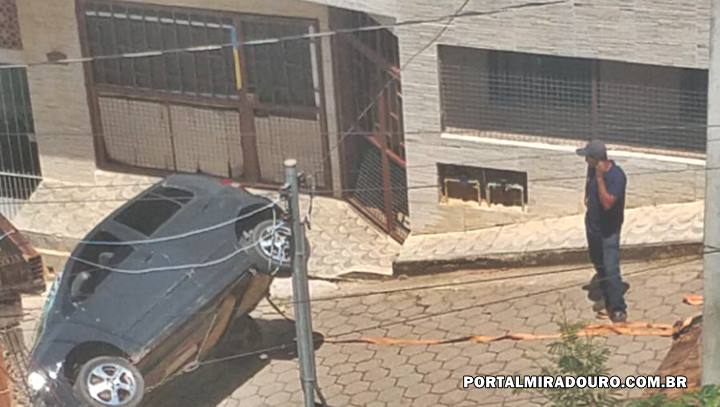 Motorista perde o controle e capota carro na subida da Rua do Lions com o bairro Caixa d’água em Miradouro