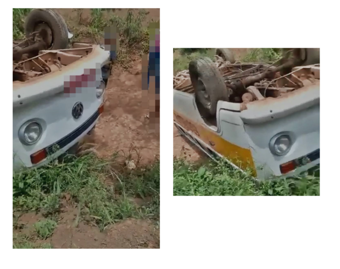O veículo bateu no meio fio em seguida capotou, ficando com a quatro rodas para cima