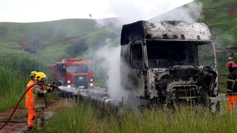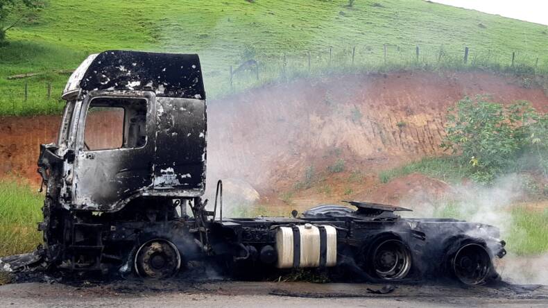 Um caminhão pegou fogo depois de sofrer uma pane elétrica na manhã desta sexta-feira (18-02), no km 657 da BR 116, entre Miradouro e Fervedouro.