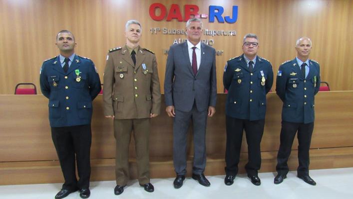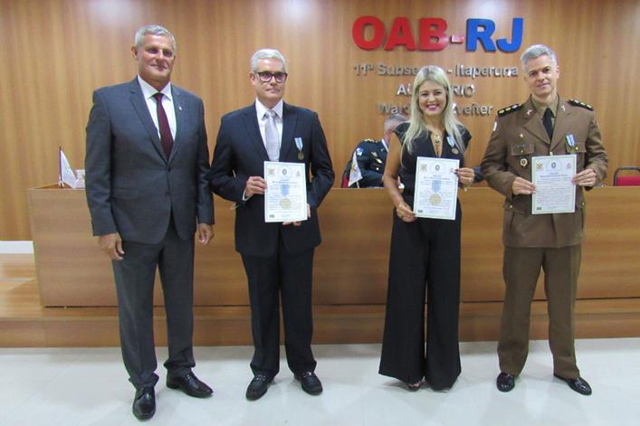 O evento aconteceu no Auditório da 11ª Subseção da OAB de Itaperuna-RJ e, na ocasião, também foram homenageados com a Medalha Mérito Marechal Castelo Branco o Comandante do 47° Batalhão da Polícia Militar de Muriaé, Ten Cel Márcio Roberto de Sousa e a Juíza Alinne Arquette Leite Novais, diretora do Fórum de Muriaé.
