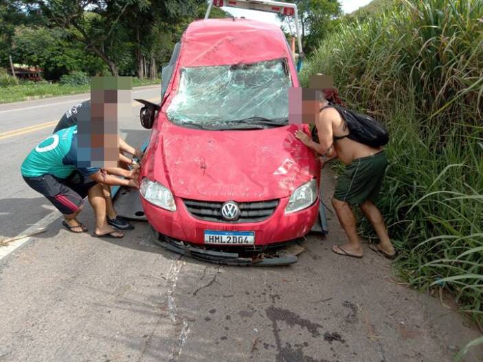Um acidente foi registrado na manhã deste sábado (15-01) na BR 116, próximo do Posto F2 entre Miradouro e Muriaé. As primeiras informações dão conta que o pneu teria estourado, em seguida o veículo se colidiu contra o corrimão da ponte, onde o condutor perdeu o controle da direção e capotou a cerca de 100 metros à frente. O casal foi socorrido pelo Corpo de Bombeiros de Muriaé com ferimentos aparentemente leves.