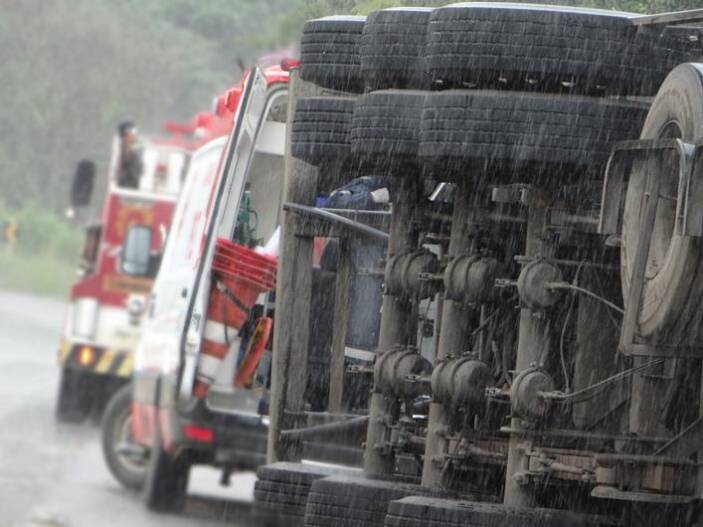 Um acidente foi registrado na tarde deste domingo (02), na BR 116, no alto do Bela Vista em Muriaé. Segundo informações o condutor da carreta que transitava de Governador Valadares para o Rio de Janeiro, teria perdido o controle da direção e tombado em uma curva na altura do Bela Vista, o motorista foi socorrido pelo Corpo de Bombeiros de Muriaé e encaminhado pela equipe do SAMU para o Hospital São Paulo de Muriaé. A Polícia Rodoviária Federal esteve no local para os trabalhos de praxe.
