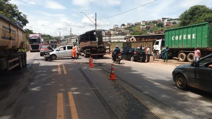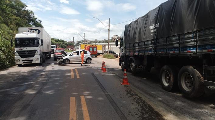 Colisão entre dois veículos deixa duas pessoas feridas na manhã desta quarta-feira (5) na BR 116 em Muriaé